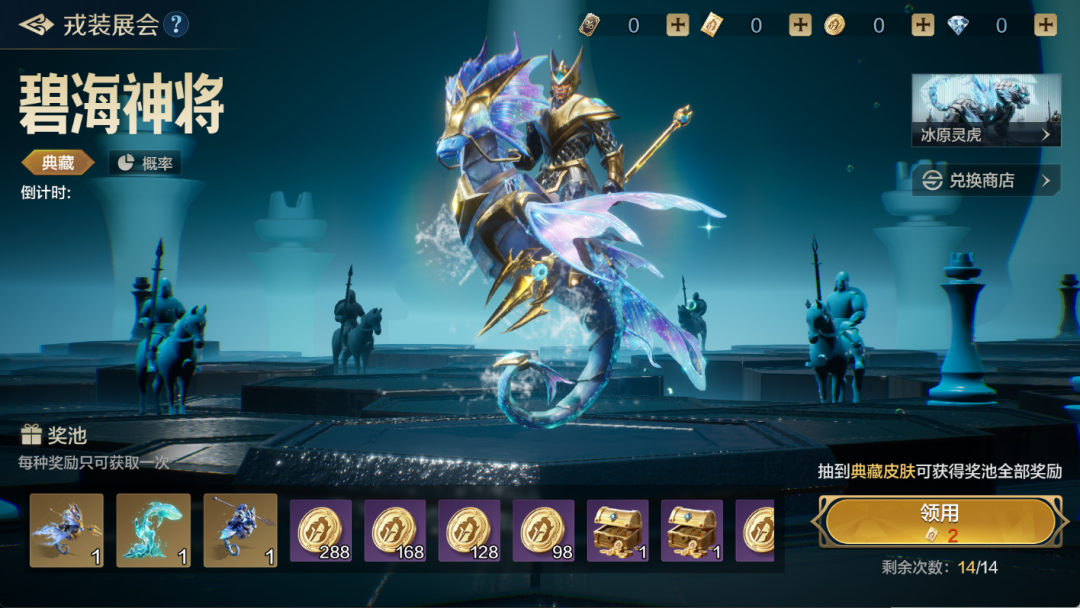 2、活动每期设置若干奖品,每次抽取消耗【戎装领用券】数量不同,每次抽取可获得其中1件奖品。