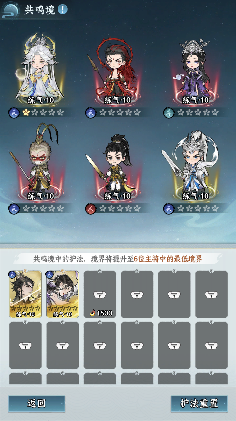未培养的护法可加入“共鸣境”,其境界将自动提升至6位主将中的最低境界。