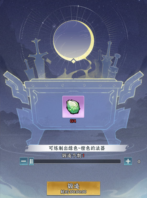 养成规则:炼制的法器品质随机,可通过分解劣质法器获取材料进行升级。