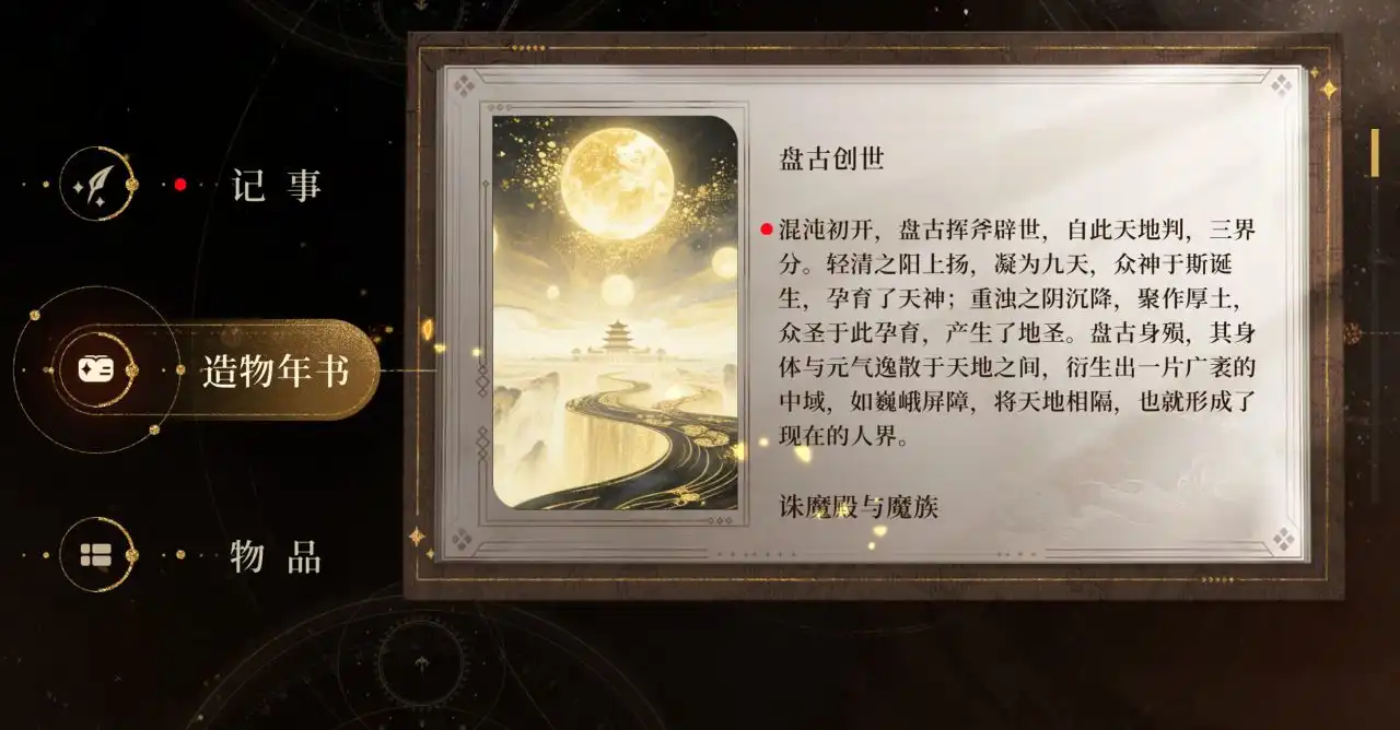 这款游戏在世界观设计上是有点宏大的,并且每玩到一个阶段都会刷新我的认知,为了不剧透这一块内容我简短来说一下。起初我看到连环杀人案还以为是这是一款破案寻亲游戏;由于我走的诛魔殿线,后面还以为这是一款助神诛魔的爽文剧情;结果再往后玩,发现天地各怀私心,而主角才是这个世界的核心神器。