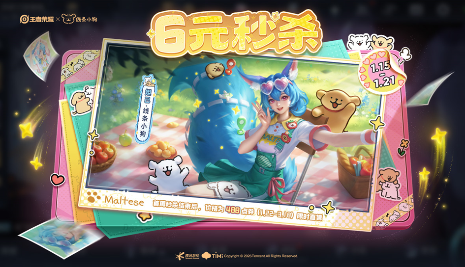 1月15更新日公告:活力线条小狗时装上新,妲己联动秒杀皮上线!