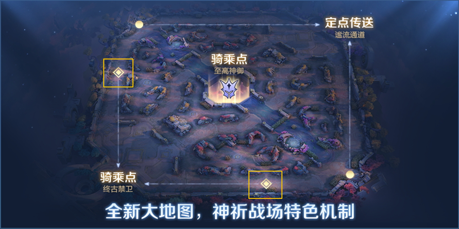在上下两条边路的刷新点每隔一段时间均会刷新出一架终古禁卫,所有友军玩家均可骑乘,在机甲上会获得强化的英雄技能和大量基础属性,助你以一敌十。