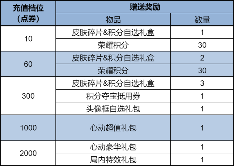 皮肤碎片&积分自选礼盒:打开礼包可任意选择以下奖励之一:荣耀积分*10或皮肤碎片*1