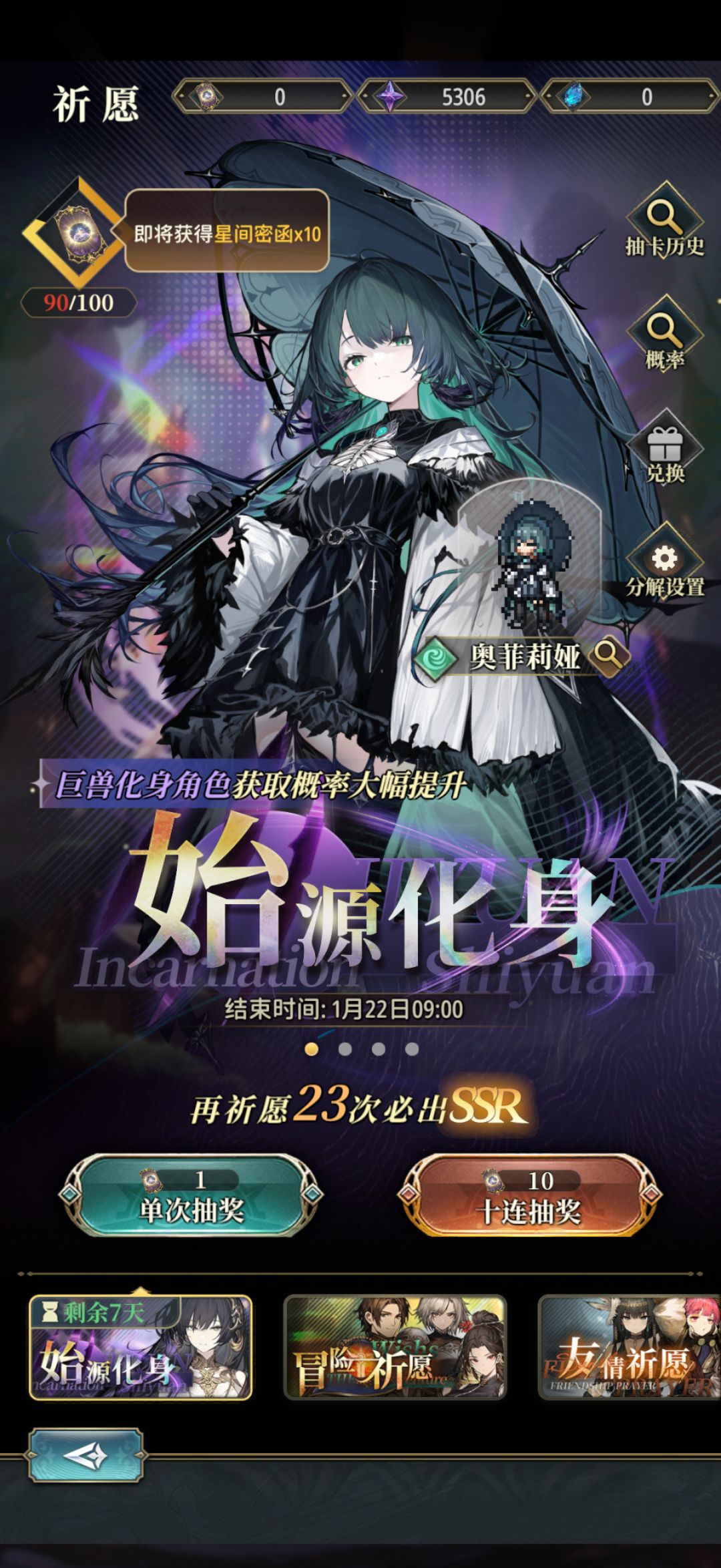 才开始玩,朋友说我这个号是顶开,我前面20发出了3up,目前抽了90抽。