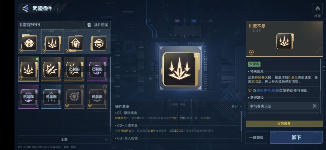 2号芯片位:我们推荐可以带(川流不息),这个天赋可以大幅提升,我们开火期间,充能效率,且999不需要换弹可以吃满,该配件的属性。