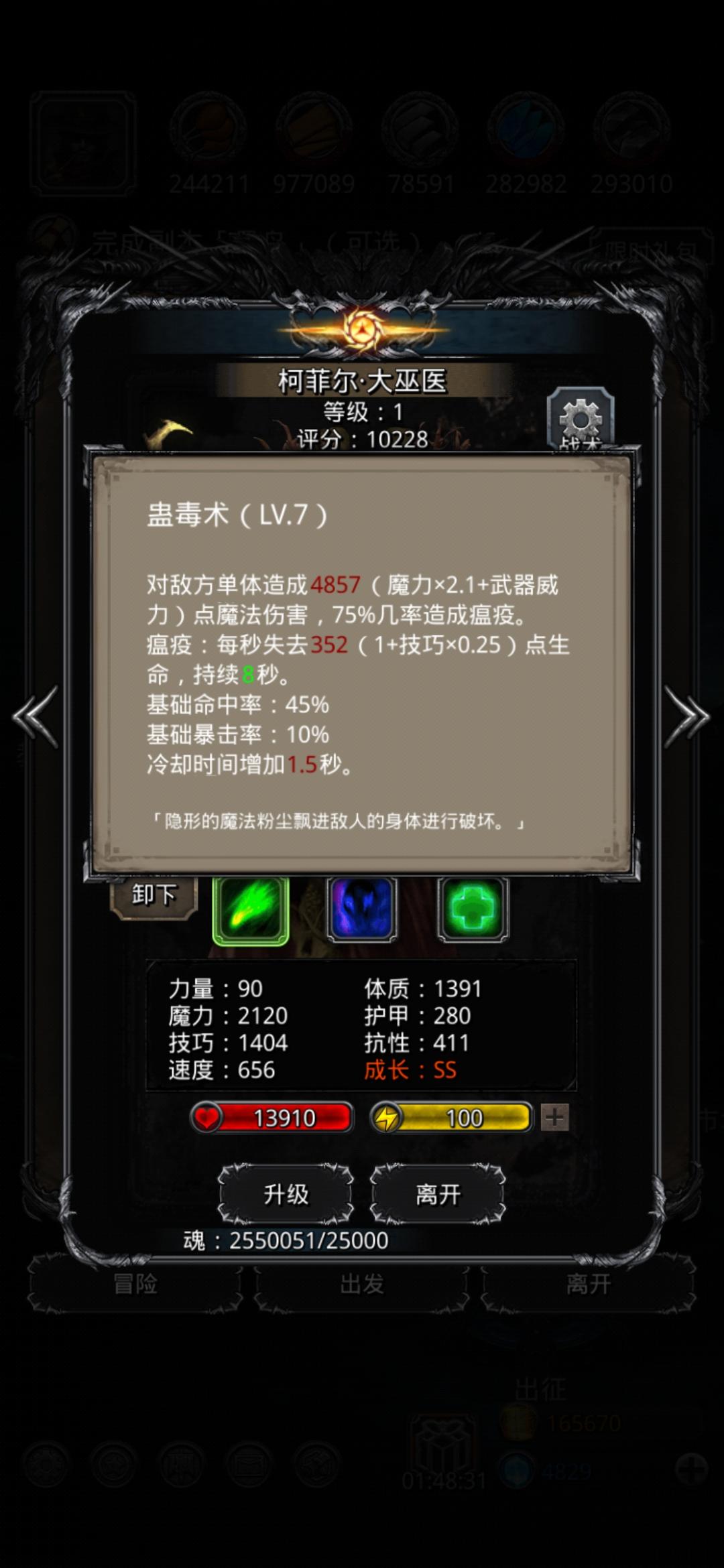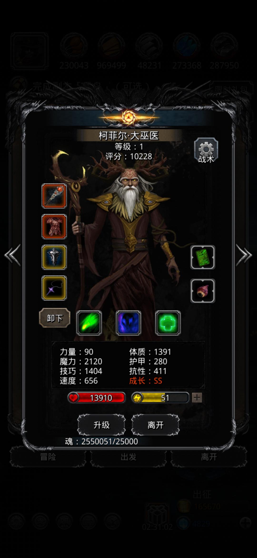 最关键的就是看3分钟内能不能打完了,我的巫医火法攻击和命中都不是太好,所以打了好几次才打死。