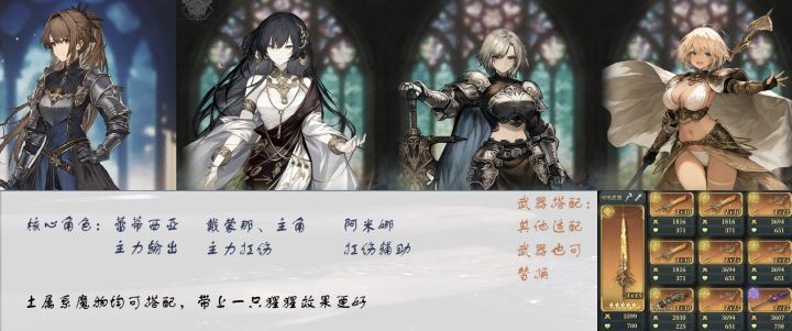 阵容搭配:1号位放骑士主角,2号位是我们本队的主角人美心善的雷帝—咳咳,蕾蒂西亚,3号位放高冷战士戴弥,4号辅助位阿米娜,魔物伙伴放骆驼,詹皇等等。只要前排扛得住,后排输出专业户。平常可以自动,在以小博大时同样可以用队内成员的高额减伤技能以及蕾蒂西亚的始源壁垒(获得一回合无敌)去抵挡敌方关键伤害技能为蕾蒂西亚争取叠层空间从而取得胜算。