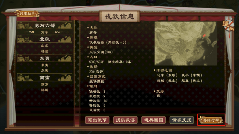 组建的戎狄部落可以在后续收回,并获得其中的人口。组建与收回戎狄均需要消耗6个月。