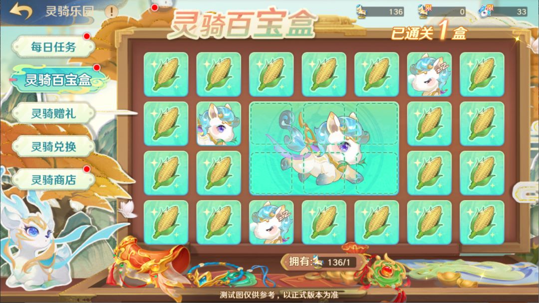 守护使大人进入【灵骑百宝盒】后,可以使用对应道具开启宝物格子,入手奖励。