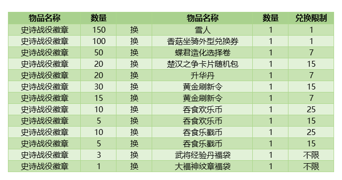 2. 史诗战役徽章可于「福利→好礼兑换→史诗战役」兑换奖品