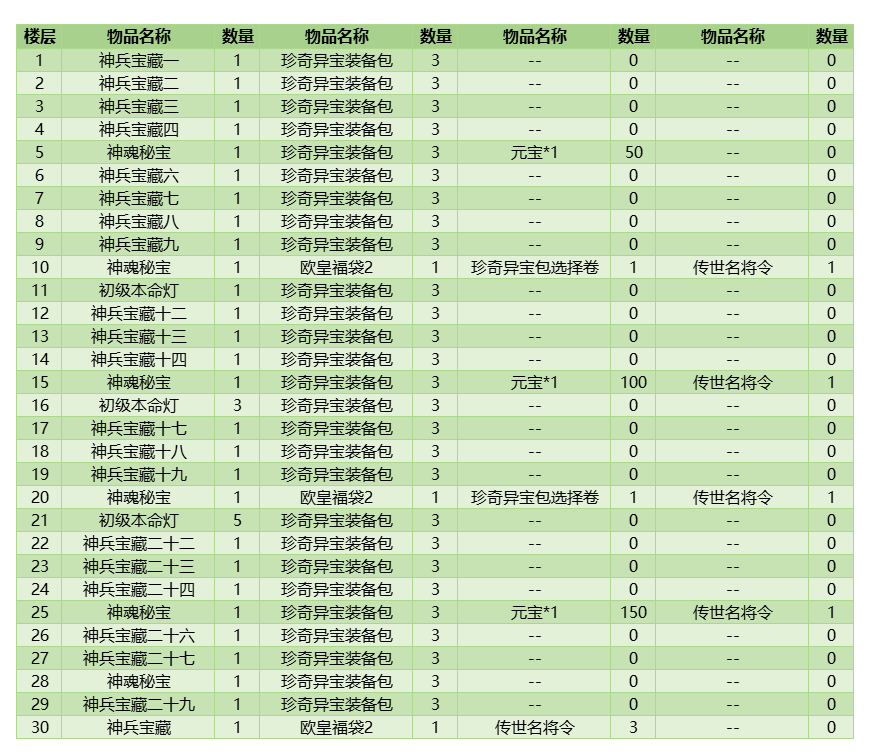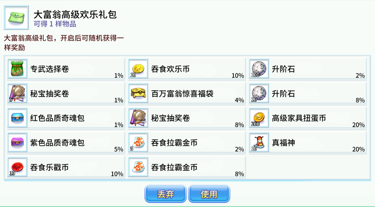 大福神x100+武将青绿经验丹x100+巴豆幸运礼包x1