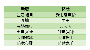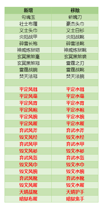 红色为熔炉新增装备