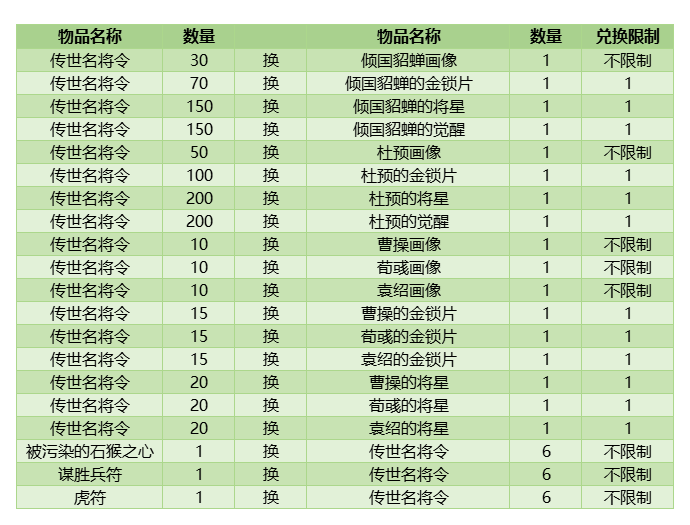 【名将兑换】