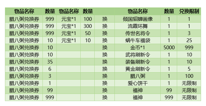 于全地图打 LV30 怪将有机率获得活动道具「腊八粥兑换券*1」