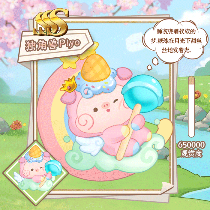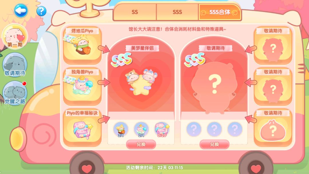 美梦星伴侣是Piyo野营记第一期SSS级合体鱼,通过烤地瓜Piyo和独角兽Piyo、Piyo的幸福秘诀道具合体获得!