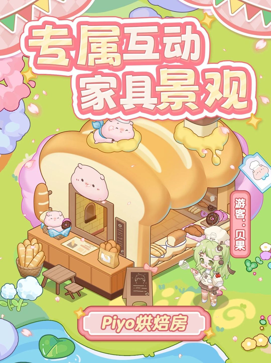 甜蜜可可-鱼池背景随活动上线~Piyo和Yopi陷在松软的甜甜圈里,手捧热可可,身旁满是甜品美食!相信把联动小鱼放置在此处鱼池更有一番甜蜜滋味~
