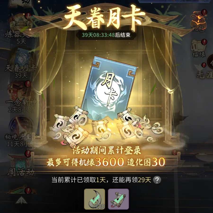 每日登录可免费领取造化图和大量机缘
