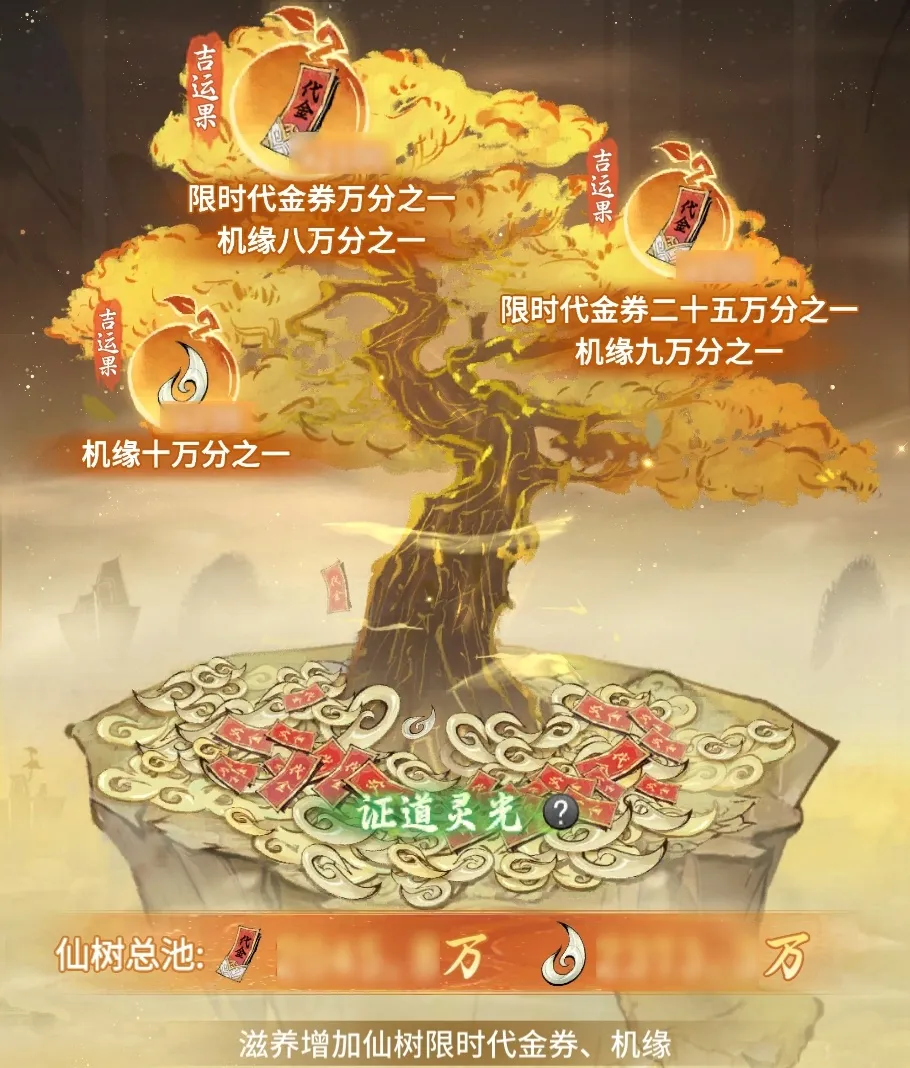 每日滋养仙树可积累限时代金券、机缘池
