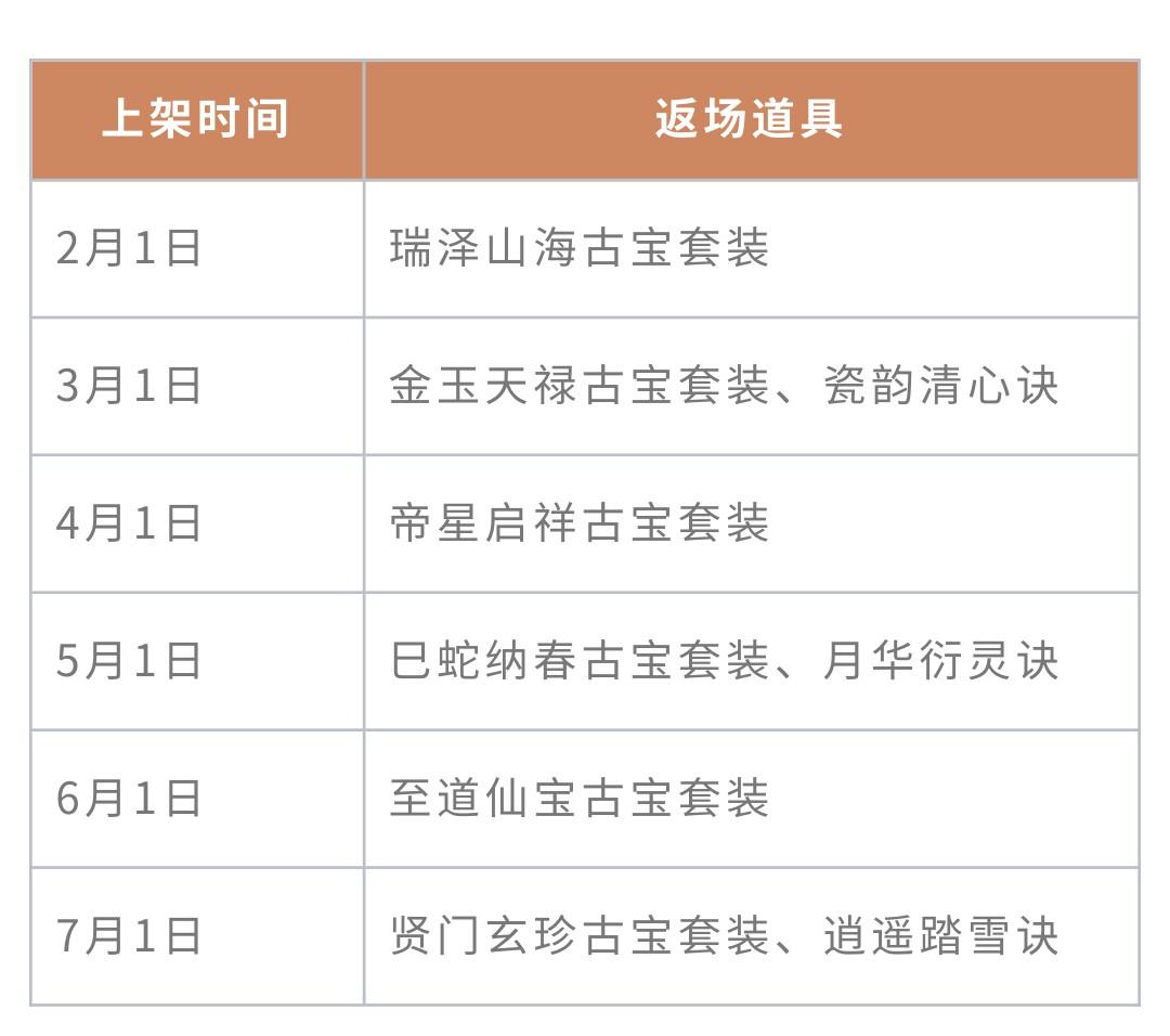 具体返场道具可查看下表~