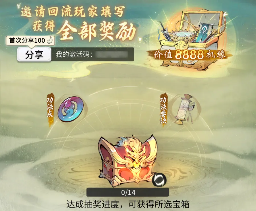 邀请回归仙友填写激活码可直接领取奖励