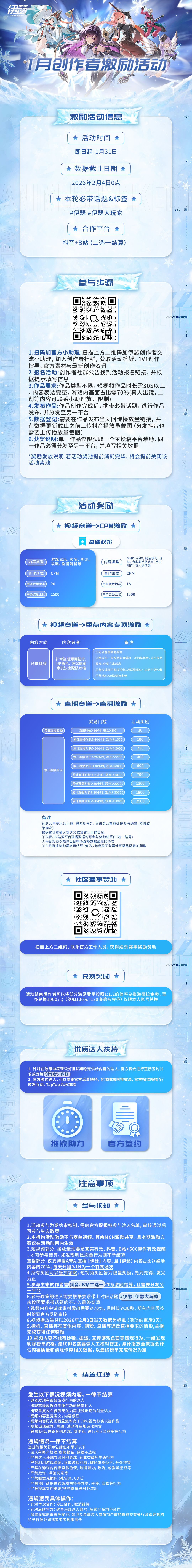 2026年首波创作激励火热开启!无论你是攻略大佬、剪辑高手,还是同人画师,只要分享与《伊瑟》有关的创作内容,就有机会赢取丰厚现金奖励、精美周边,还有专属创作头像框哦~