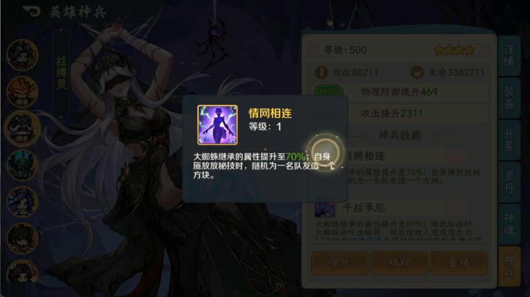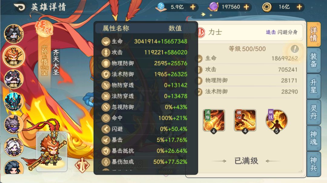 看到挺多小伙伴说孙悟空需不需要洗闪避词条,其实是不用的,目前蜘蛛夫人在战斗中稳定给60%,我们只需要把闪避提升到40%以上即可吃满神兵6的增益效果,闪避可以在神魂强化那获取,3个3级就有36%的闪避再加上其他特殊古宝给的闪避率是轻轻松松拉满100%闪避的