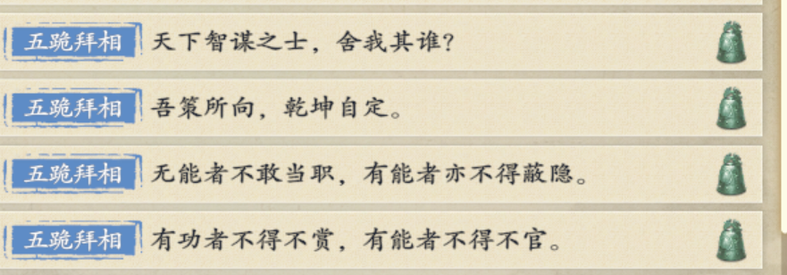 11.范雎,范雎的五跪拜相也是有4条语音,应该是对方给牌有两条,让对方获得战法是另外两条,但游戏内只会播放前两条