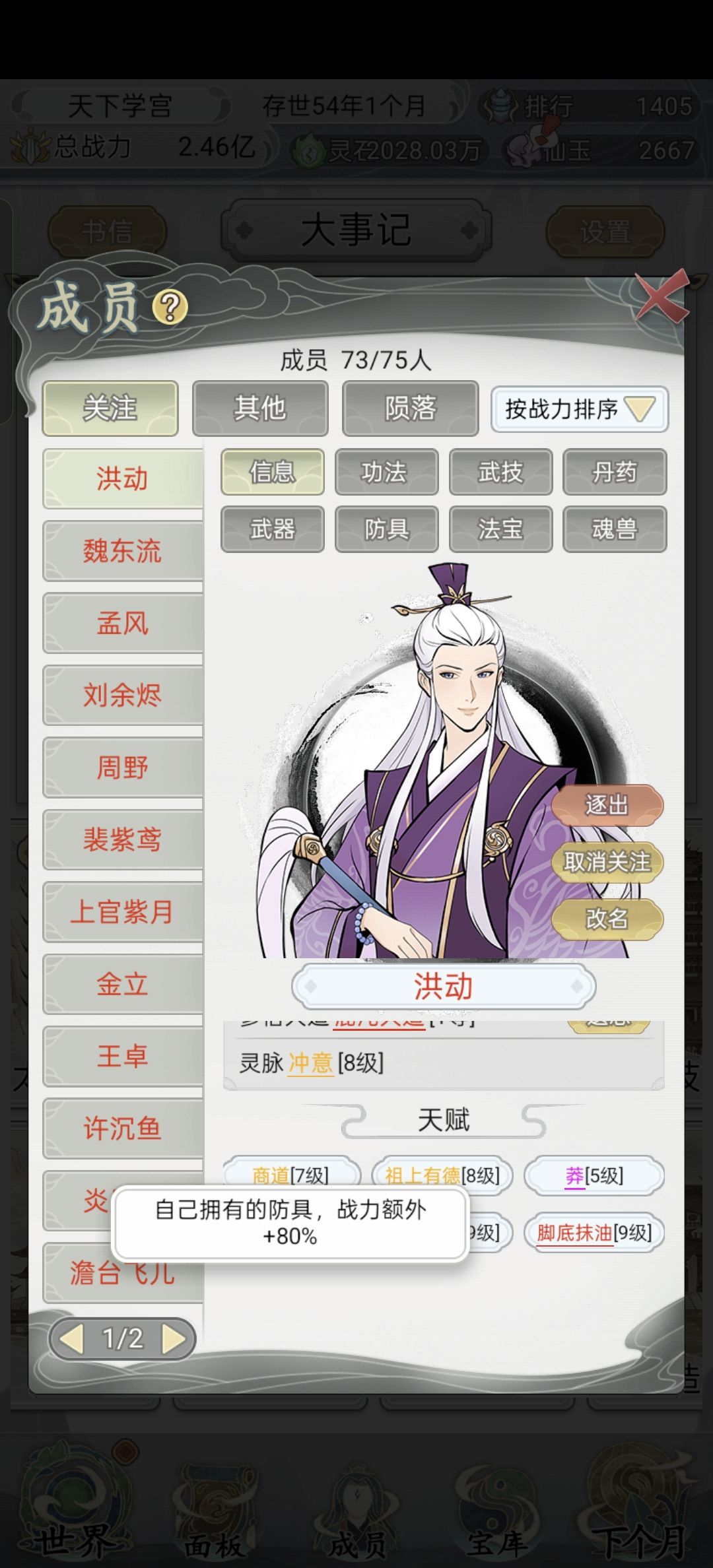 虽然丹药不限量,但是后期丹药不如自主修炼加成多,而且需要丹药给新招天才拉战力,丹药始终不够用,你所有弟子都升满了嘛就用丹药刷高级战力?加上4倍的战力加成差距,想要总战力提升不应该只盯着一个弟子,所以弃游前丹药精通真不好用