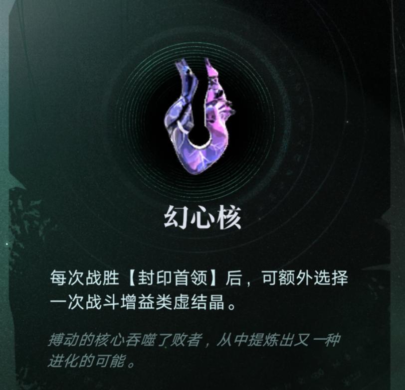 幻心核,第一层优先拿,除非缺了其他虚结晶打不过这层的BOSS,第二层酌情拿,第三层不用拿