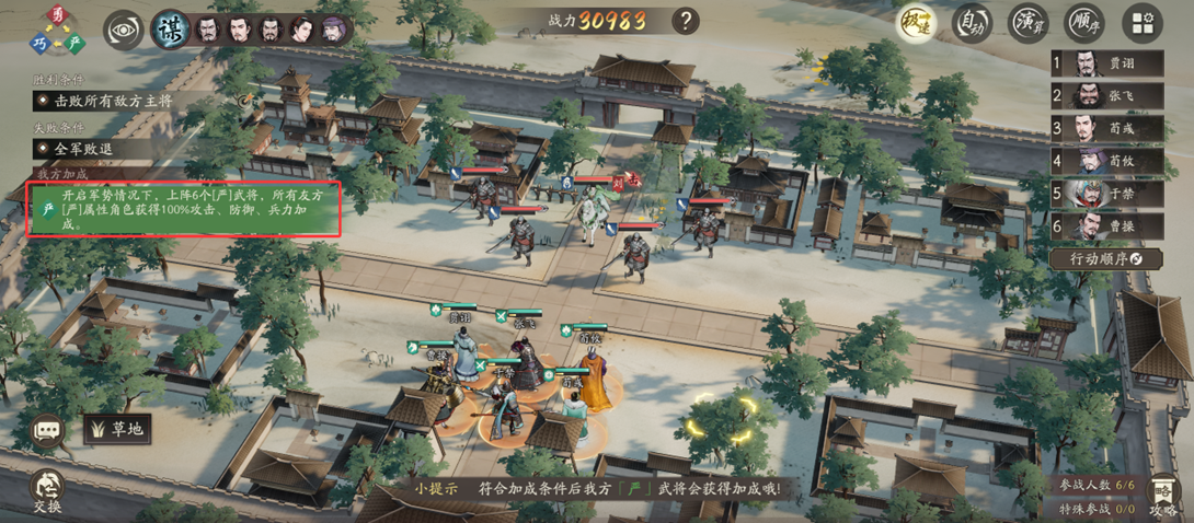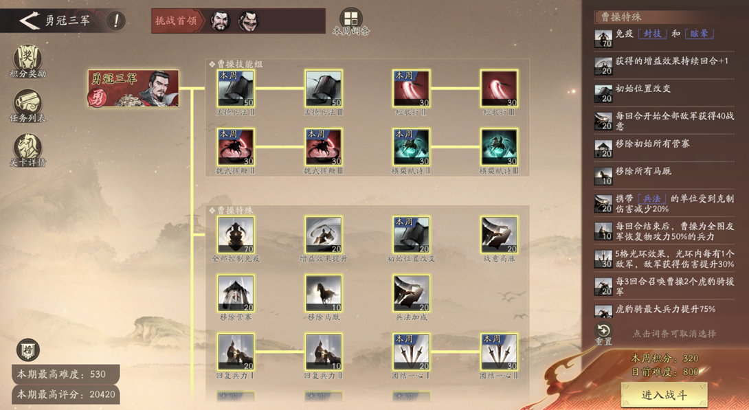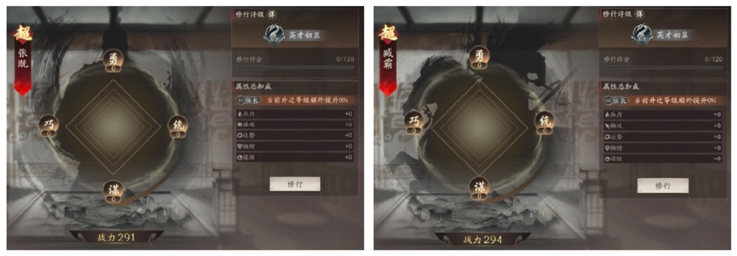 物攻副将:优先对副将进行物攻值提升,物攻值点满后无视其它未满属性,按优先级切换修行方向,勇武>统御>机动>谋断。若修行评级提升,重置优先级,返回勇武继续提升。