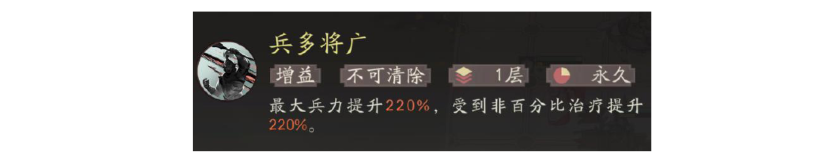 在该玩法内,由于主将血量加成被环境默认BUFF提高了220%,所以很难被一击秒杀。此时后勤的治疗作用会被放大。在对局队伍中安排上后勤可一定程度提升胜率。