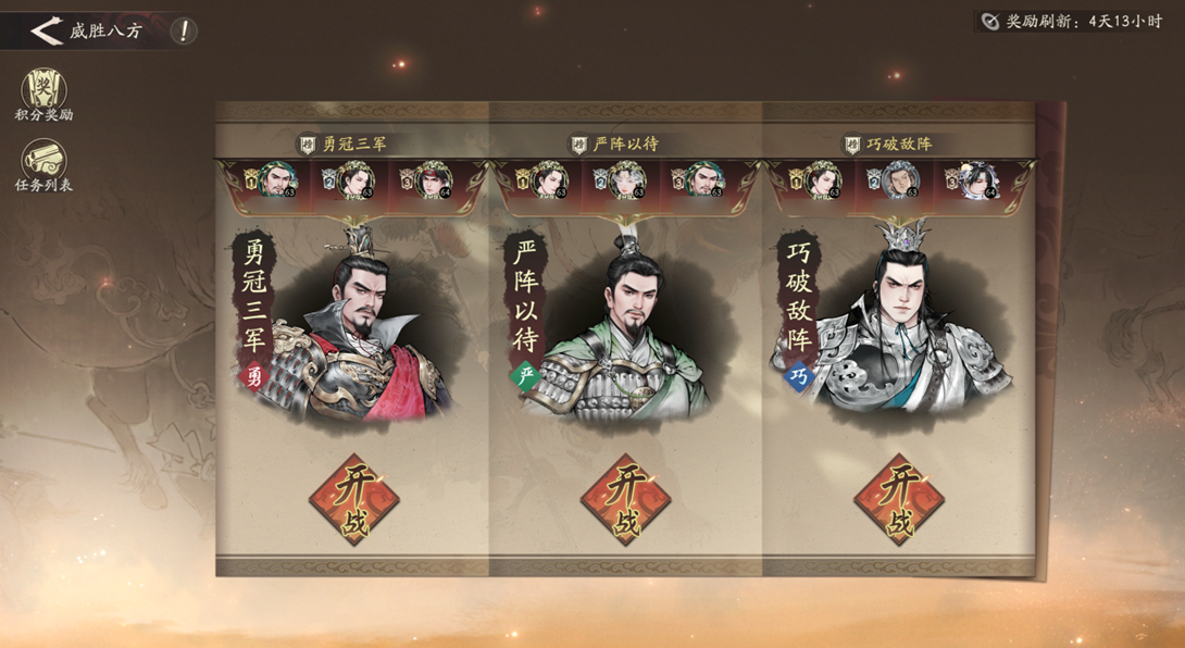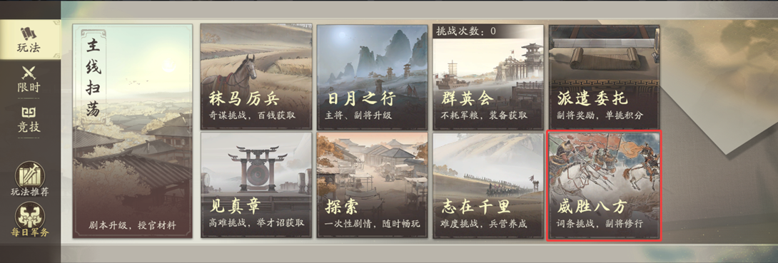 本篇指南将展开介绍威胜八方、论战三军及副将修行。