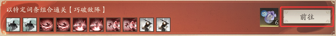 注意:特定词条组合任务只要在通关时全部所选词条包含所有指定词条即可,可以通过额外增加其它通用词条来使自己一定程度上降低通关难度。如上图中「物升谋降」与「回合之内」,只要上阵的主要输出是物攻+主动伤害角色,选择这类词条实际提升了我方实力。