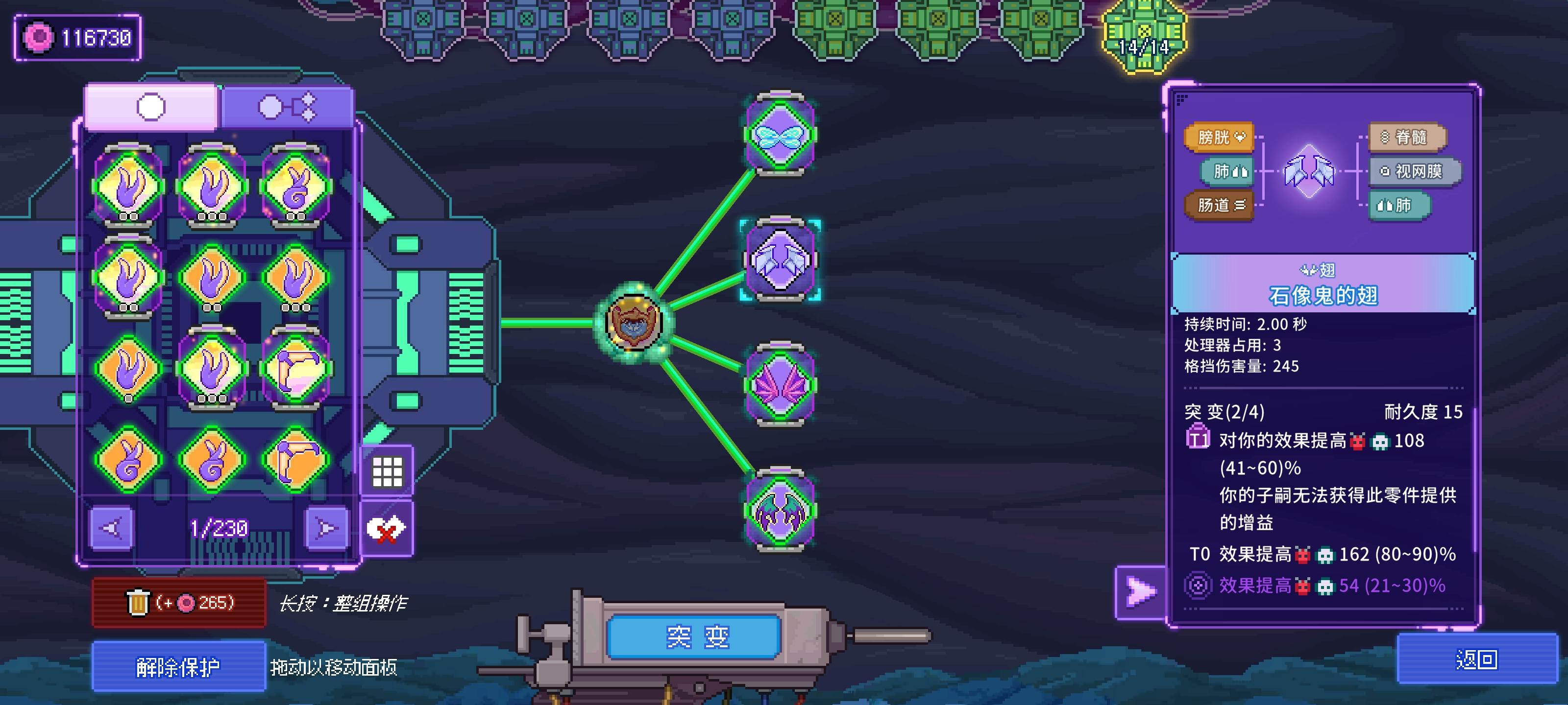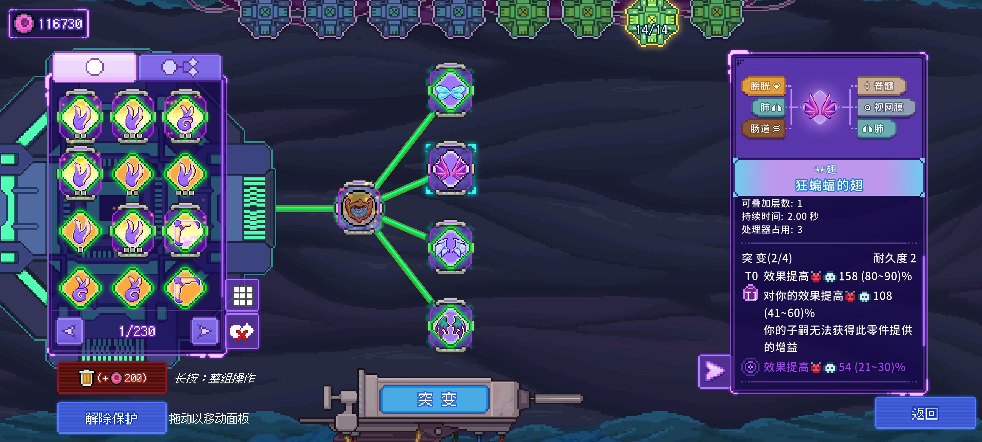 蜻蜓人的翅提升移动速度,移动速度又通过风羚的基因转化为效能,效能又能增强其他器官的数据。
