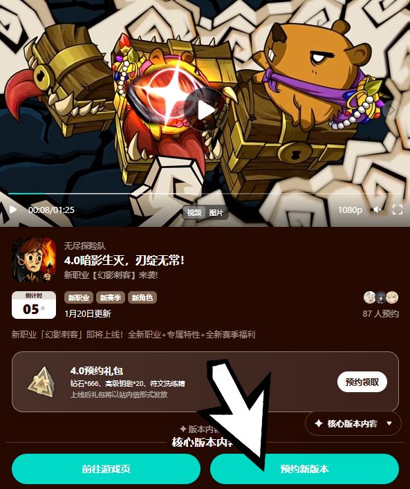 ①前往TAPTAP《无尽探险队》页面,预约新版本;