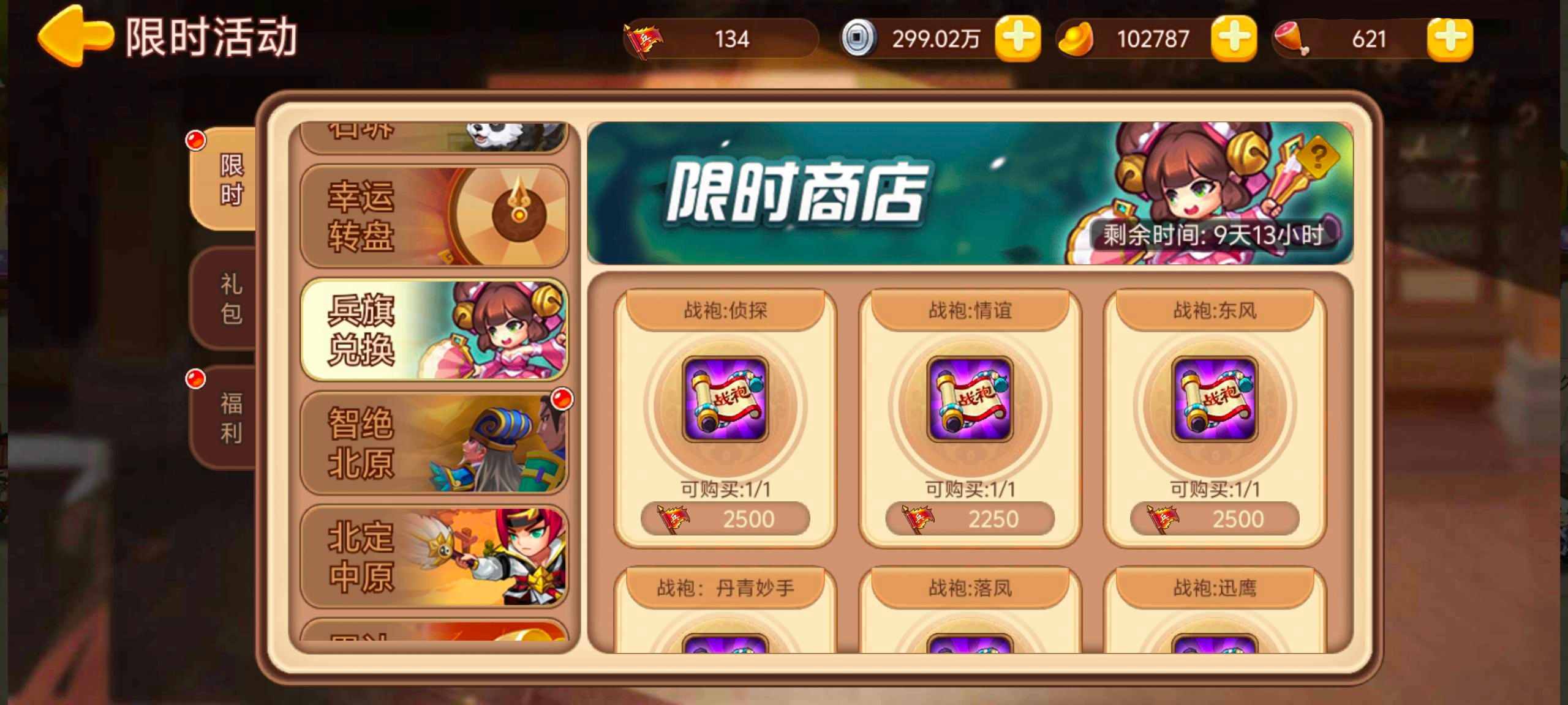 活动内容:活动期间收集兵旗可兑换战袍、武将宝箱等奖励。