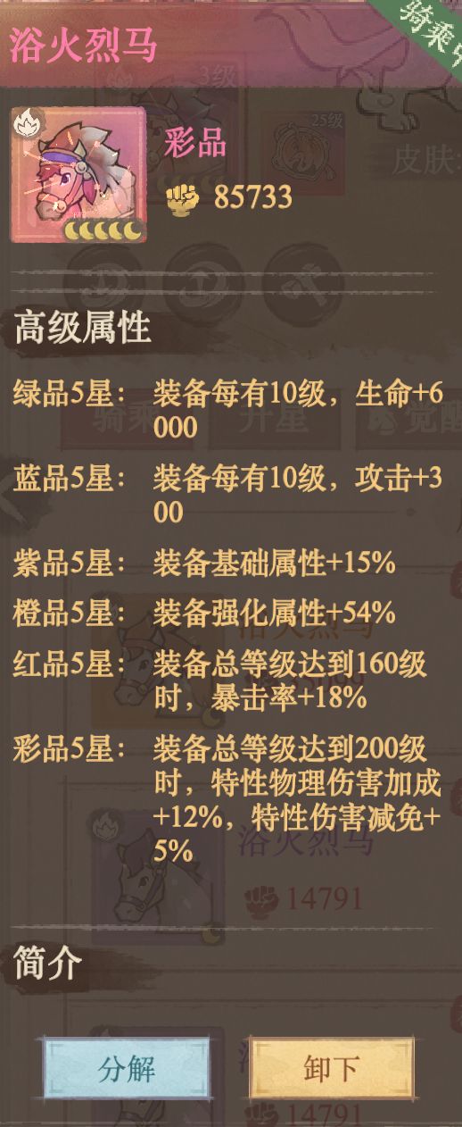 前排扛伤的铁卫,比如樊梨花、虬髯客,最适合“裂岩铁马”,这种马血厚防高,能让前排站得更久。至于药师和辅助,“穿林骏马”是首选,它能提供一定的生存能力。虽然在马匹品质较低(橙色及以下)的时候,属性差别不算太大,但一旦进阶到红色甚至彩色,属性偏差会非常明显。所以,玩家一开始就应该按职业对应去寻马,免得后期还要重新置换。