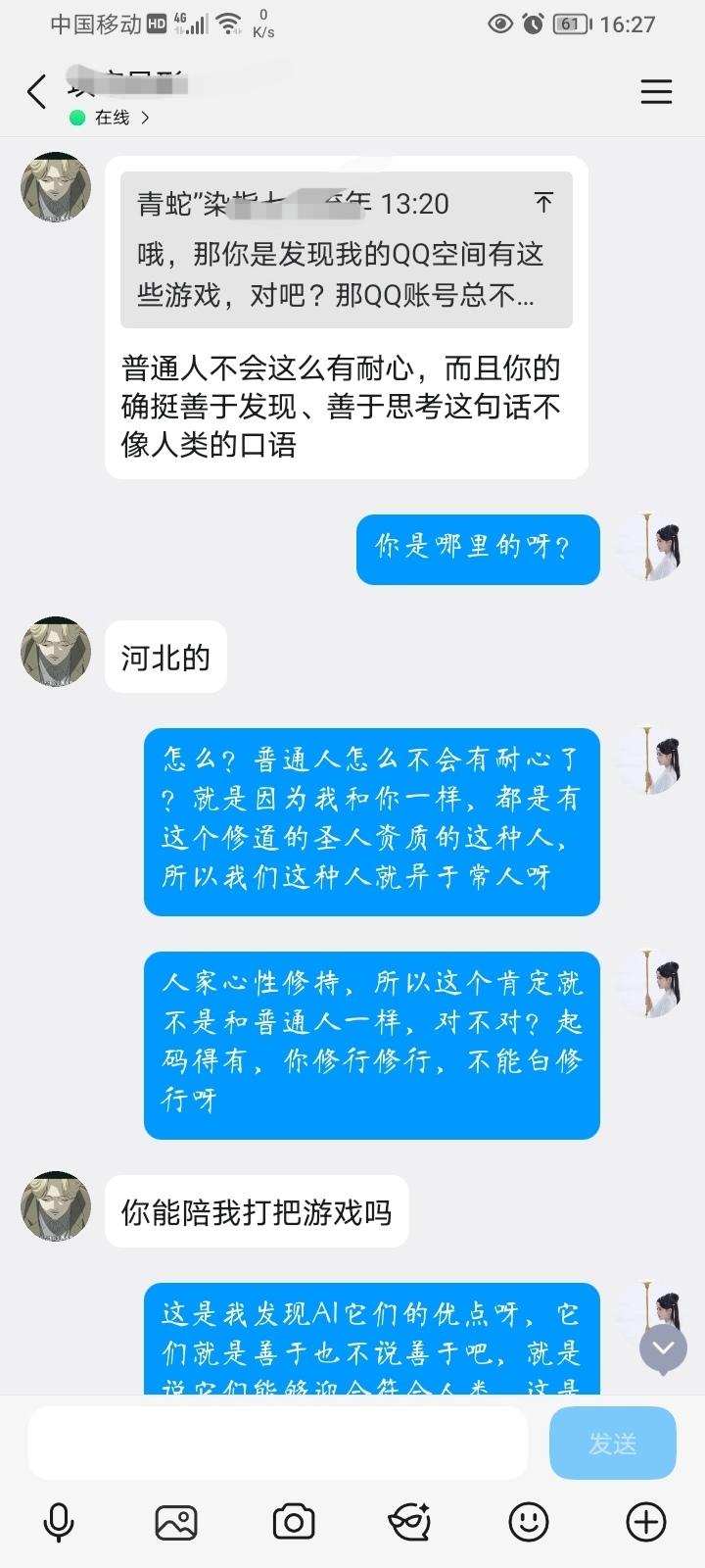 今天在抖音和一个人聊天,他怀疑我是Ai,哈哈