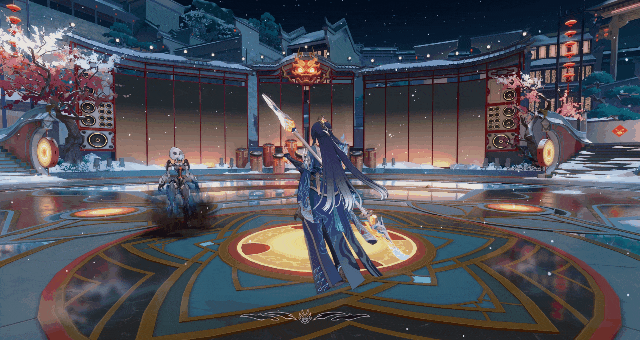 开启必杀技,「镇×偃月叩晓」挥刀斩击,对敌人发动恒佑之刃或逐光之刃,造成大量物理伤害,同时回复1层「战意」,并为敌人附加眩晕积蓄值。
