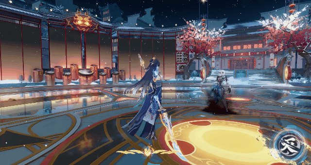 星环爆发期间,能量充足时「镇×偃月叩晓」可通过连续释放必杀技回复「战意」,并按一定比例获得「烁迹」,当「烁迹」达到一定值后触发特殊效果「衍相法」,全队触发2次「衍相法」后,「镇×偃月叩晓」的镇岁斩与必杀终结技得到强化,额外造成高额物理伤害。