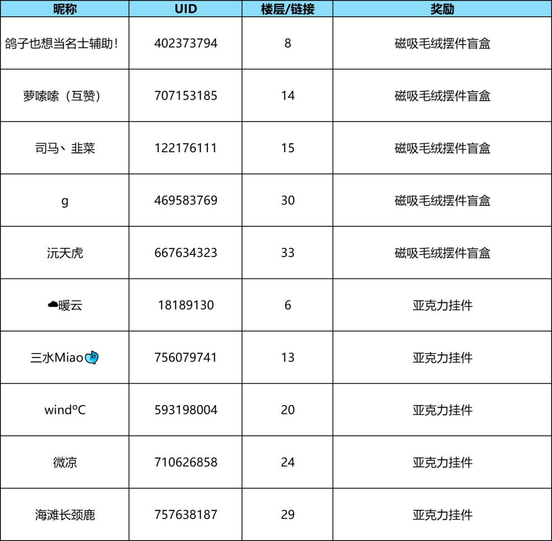 1.活动获奖名单将在活动结束后在本帖公布,请持续关注本帖;
