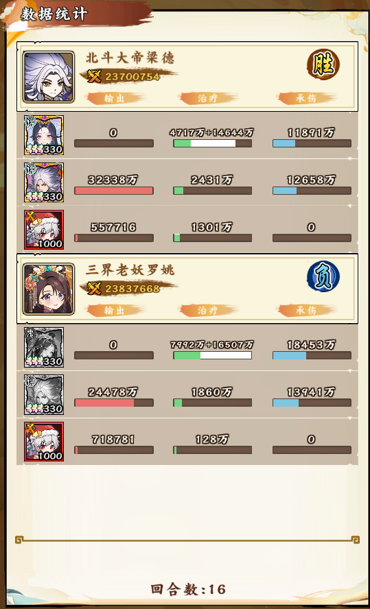 1. 数据统计奶量是比甄宓少一点,但《普度之印》转化的治疗没算在【慈航道人】身上的(治疗的施加者不是她了,是攻击的那个人),所以实际上奶量相差无几,而且还得算上对面攻击变成奶量这部分的伤害缺失。