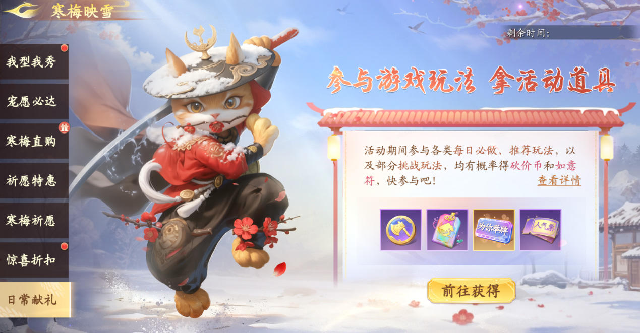 河洛城特意筹备了冬日主题活动!1月16日5:00-1月19日5:00期间,前往【寒梅映雪】活动,既有新一轮 “我型我秀” 风采竞榜,又有灵韵满满的许愿树祈福,福利与暖意双双拉满!