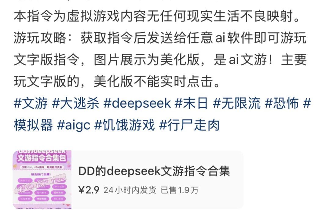 开发者们会将自己写好的提示词做成PDF文件,以相当低的价格售卖,有时玩家只需要支付2-3元,就可以购买一大堆这样的游戏。