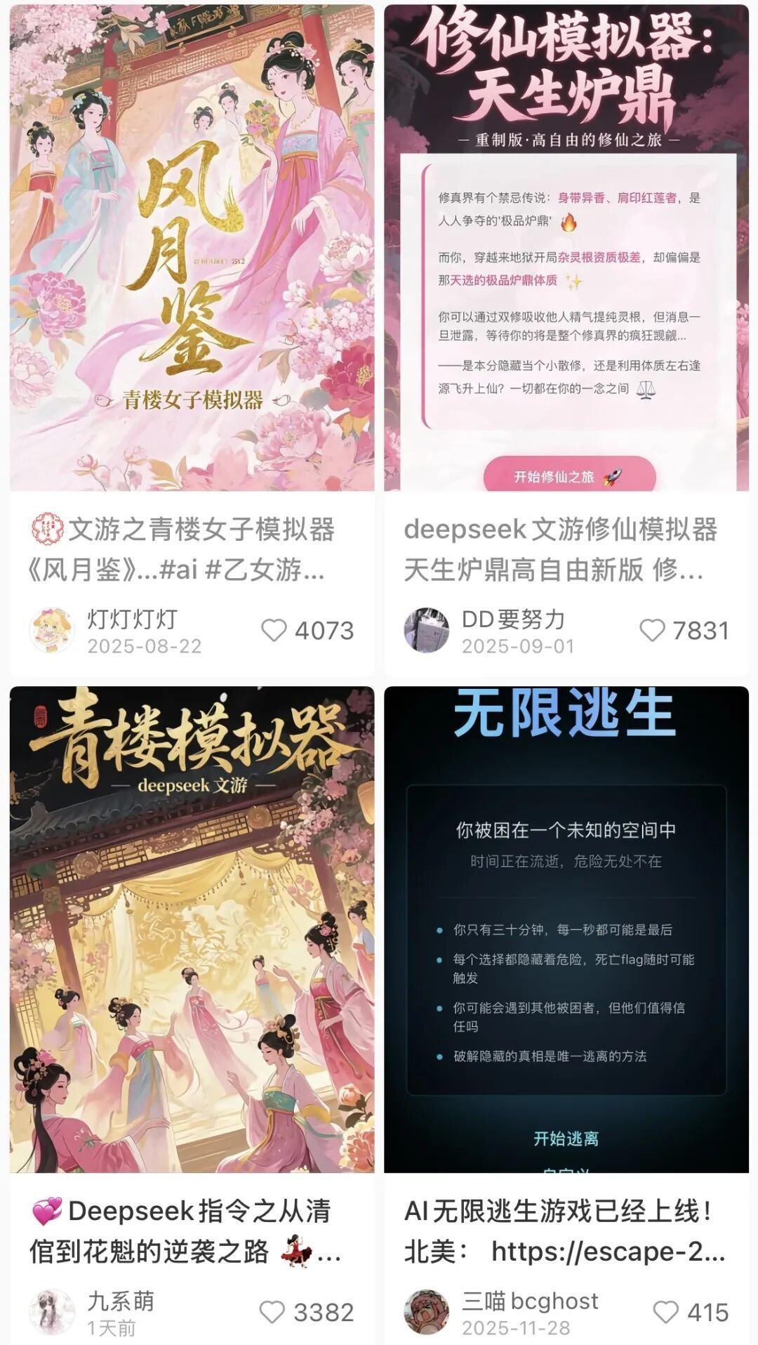 去年,随着Deepseek横空出世,成为一款可免费使用的「国民级AI大模型」,一种全新的游戏生态出现了,他们的开发者将这个品类称之为「AI文游」。