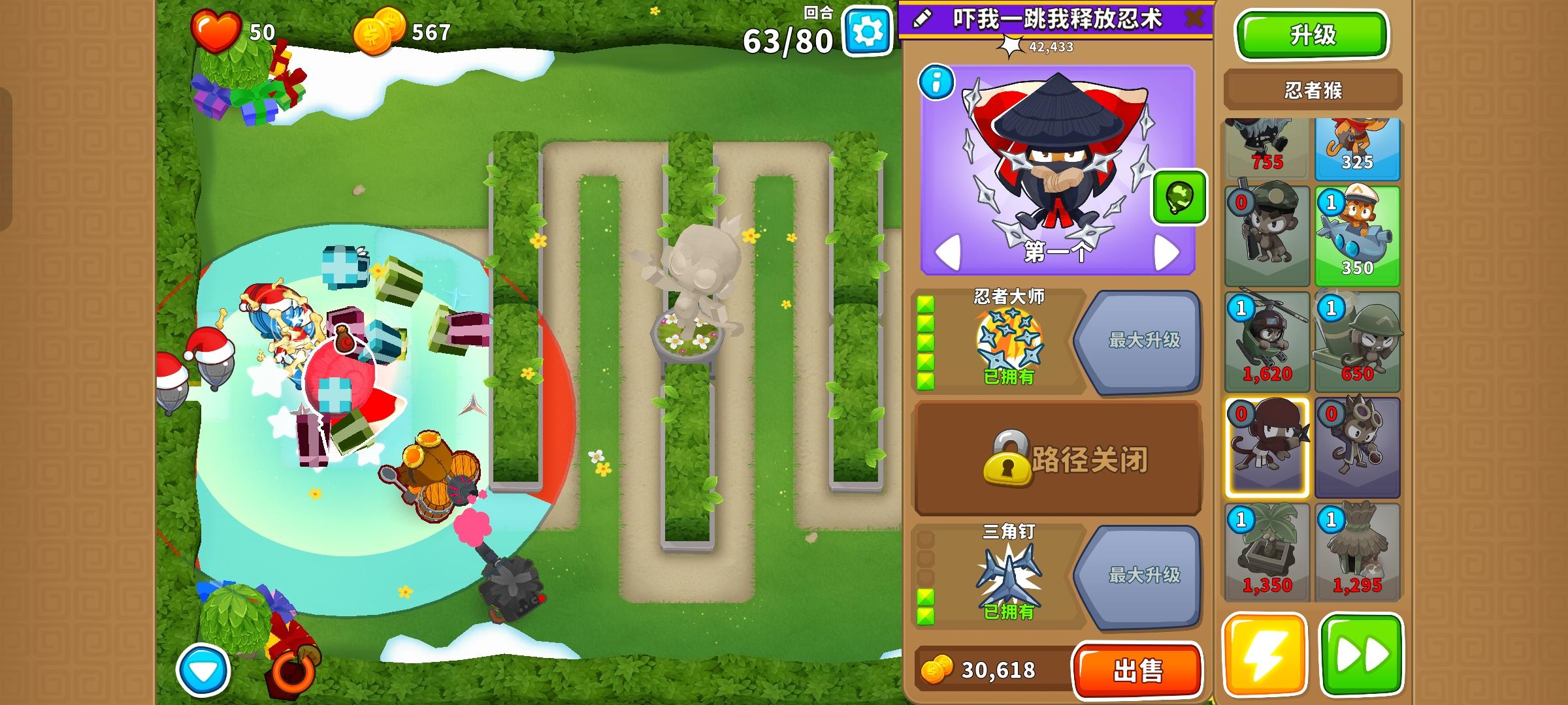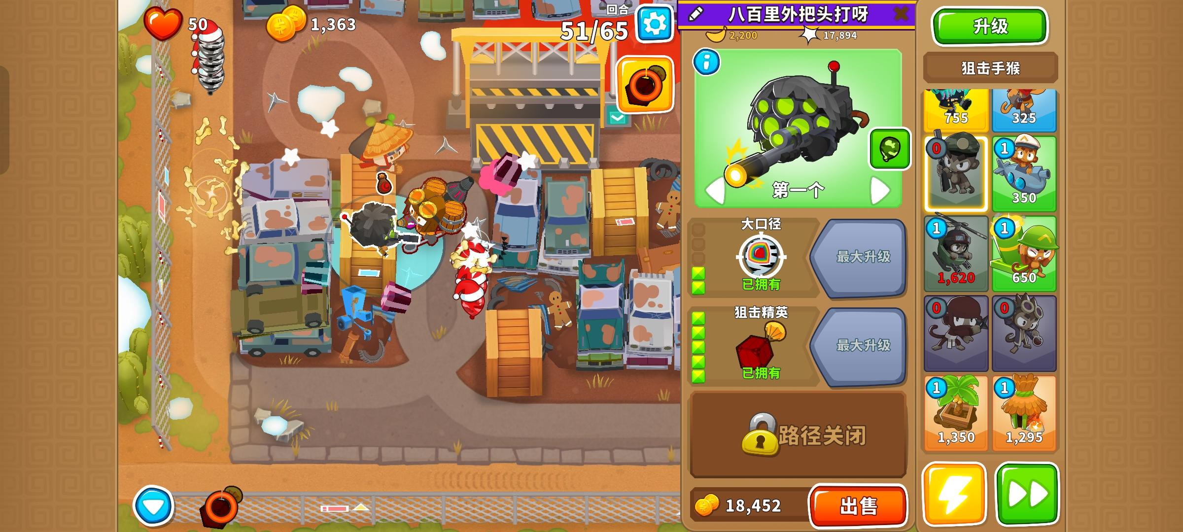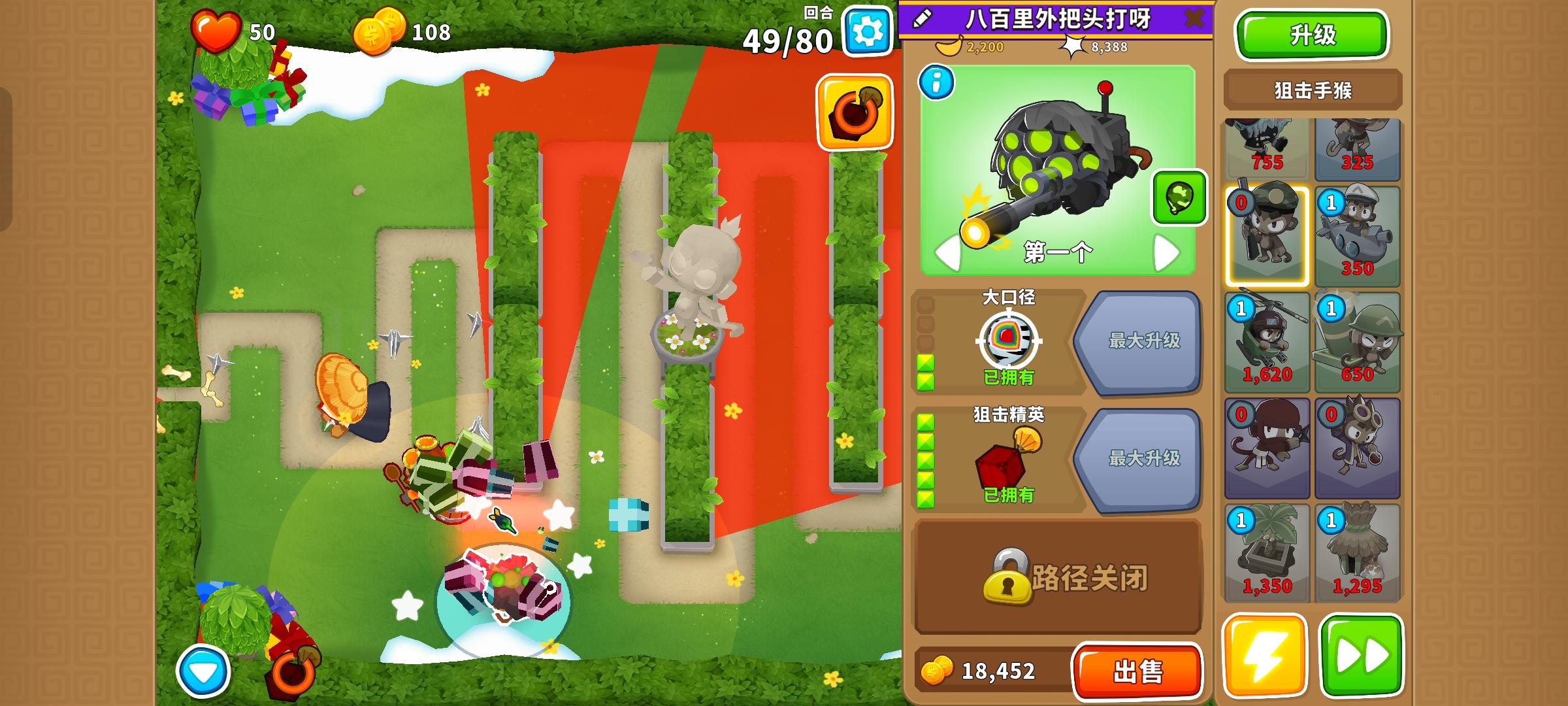 岛2:也是差不多的流程,只要放好位置就行,并且能将狙击手猴升到250。必要时也能用图上的机关补伤害!