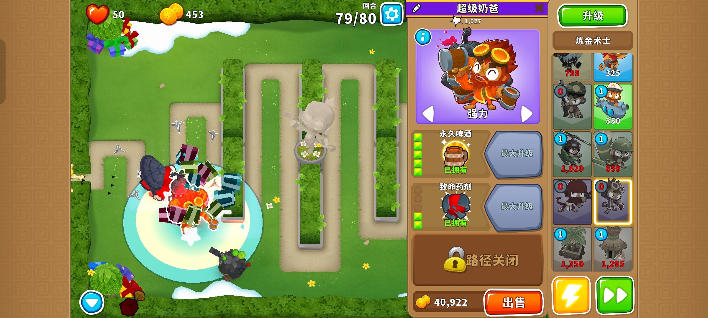 只要带上英雄琼斯,亡命猴,狙击手猴,猴子潜艇,直升机飞行员,迫击炮猴,忍者猴,炼金术师,香蕉农场和猴子村就行。无需其他猴子!