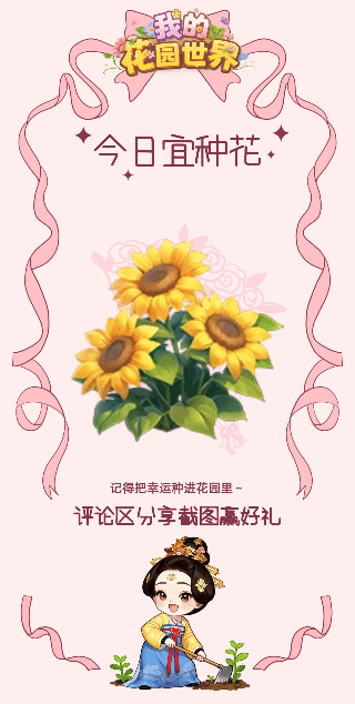 先截图「今日幸运花」,在花园里种下它,成功后截图分享即可!