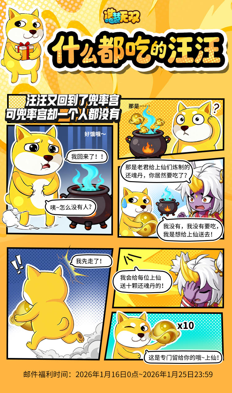 连我都感到好奇……到底汪汪为什么这么馋,怎么什么都吃?上次在兜率宫帮了倒忙的他,这次又回来找吃的了,看看他在老君这里发现了什么吧。