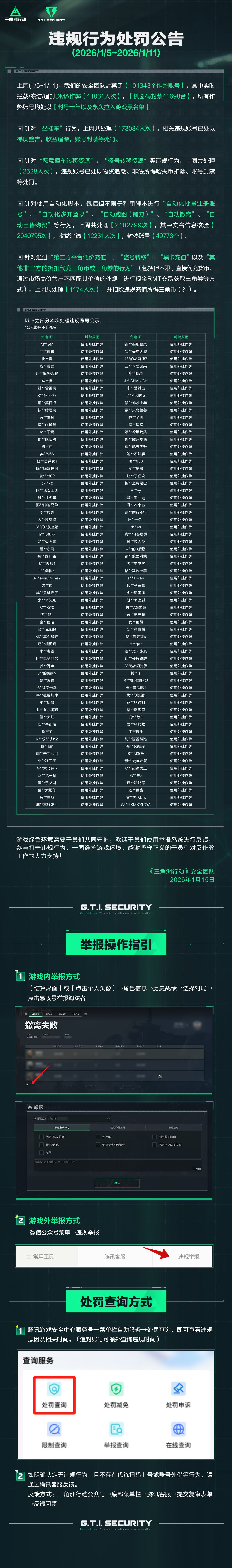 违规行为处罚公告(1.5~1.11)